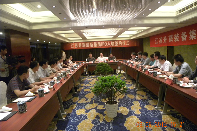 副縣長盧忠平在江蘇升輝裝備集團(tuán)IPO入軌簽約儀式上講了話。他說,升輝集團(tuán)是我縣建材機(jī)械行業(yè)的一家骨干企業(yè),進(jìn)軍資本市場的條件已經(jīng)成熟。他希望升輝集團(tuán)加快推進(jìn)報會前的各項準(zhǔn)備工作。他同時要求縣有關(guān)部門切實(shí)做好服務(wù),并預(yù)祝升輝集團(tuán)早日登陸、順利上市。