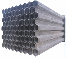玻璃鋼陽極管是將摻有石墨粉的乙烯基樹脂膠液、碳纖維表面氈、玻璃纖維束、纖維布等按一定的鋪層排序在玻璃剛拉擠設備的牽引下、通過預加熱模具熱固成型的一種導電玻璃鋼型材,用于濕式靜電除塵系統,是濕式除塵系統的核心部件之一。